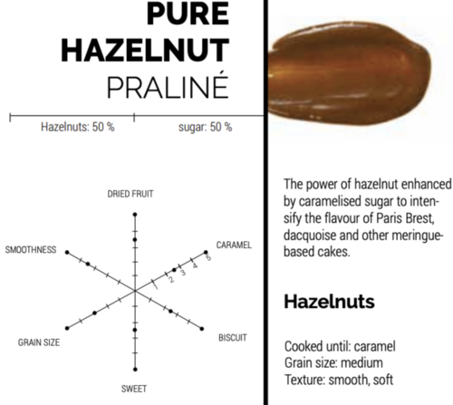 50% Hasselpähkinää, 50% karamellisoitua sokeria.