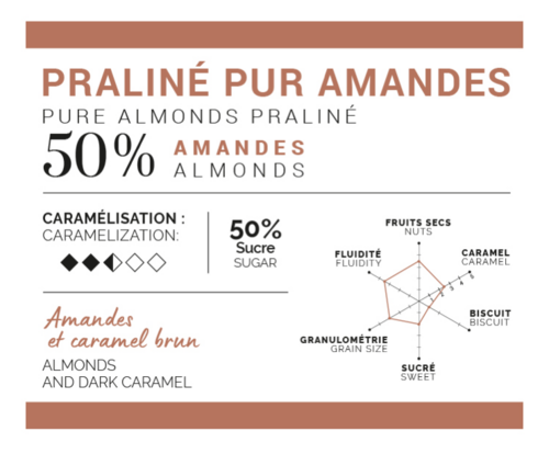 Puhdas mantelipraline jonka maku tulee esiin karamellisoidulla sokerilla.